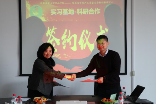 会上,双方共同签署了2138cn太阳集团城与哈尔滨市农产品质量安全检验检测中心共建科研合作及教学实习基地协议。