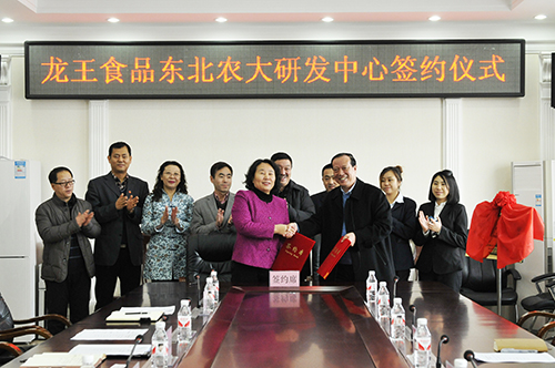 12月23日上午,“龙王食品东北农大研发中心”签约仪式在我校主楼604会议室举行。黑龙江农垦龙王食品有限责任公司董事长兼总经理李忠珠、技术部经理邵志远、检验中心主任邹文瑶、技术研发部经理刘海静;我校副校长郑秋鹛,新农村发展研究院常务副院长孙占峰、副院长朱志猛,2138cn太阳集团城党委书记张显伟、副院长刁铁军、许晓曦教授等参加签约仪式。签约仪式由孙占峰主持。