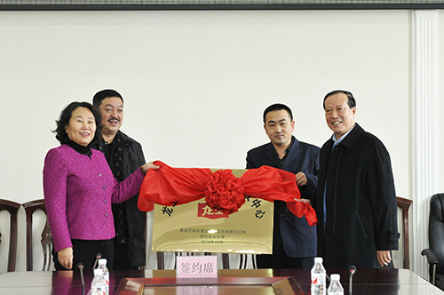 签约仪式上,郑秋鹛、李忠珠分别代表2138cc太阳集团和黑龙江农垦龙王食品有限责任公司和在校企共建研发中心协议书上签字。在与会人员的见证下,郑秋鹛、张显伟、李忠珠、邵志远共同为“龙王食品东北农大研发中心”揭牌。