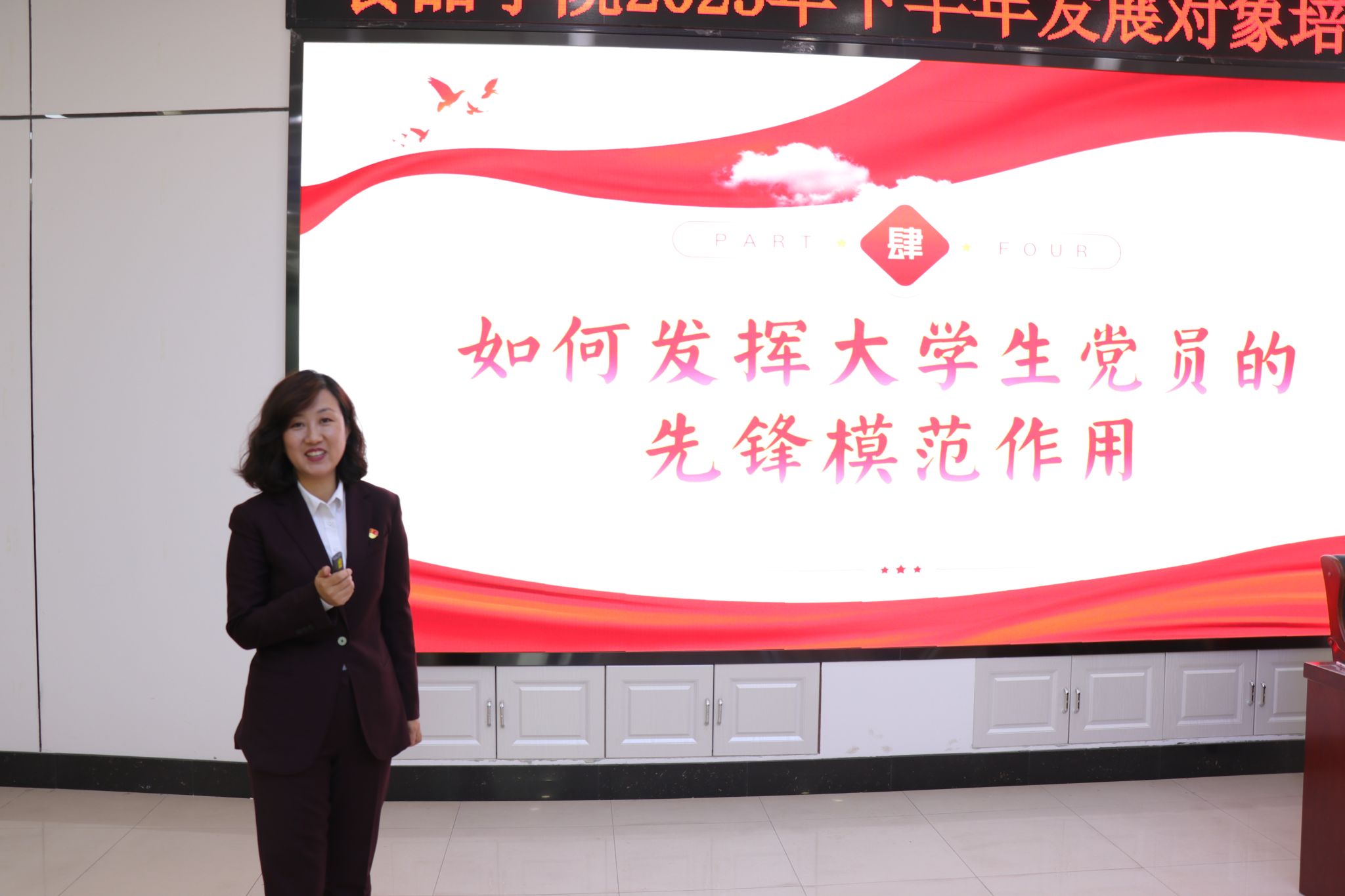 为切实严把党员发展“入口关”、党员教育“质量关”,上好入党“第一课”,11月22日—24日,2138cn太阳集团城开展2023年下半年党员发展对象集中培训活动,六场专题党课辅导分别由我校马克思主义学院侯坤、何鎏两位思政教育骨干教师及学院党委副书记钱芳、正处级辅导员崔丽、副处级辅导员金靖博、辅导员赵旭明担任主讲,培训由学院党务秘书任萌主持。
