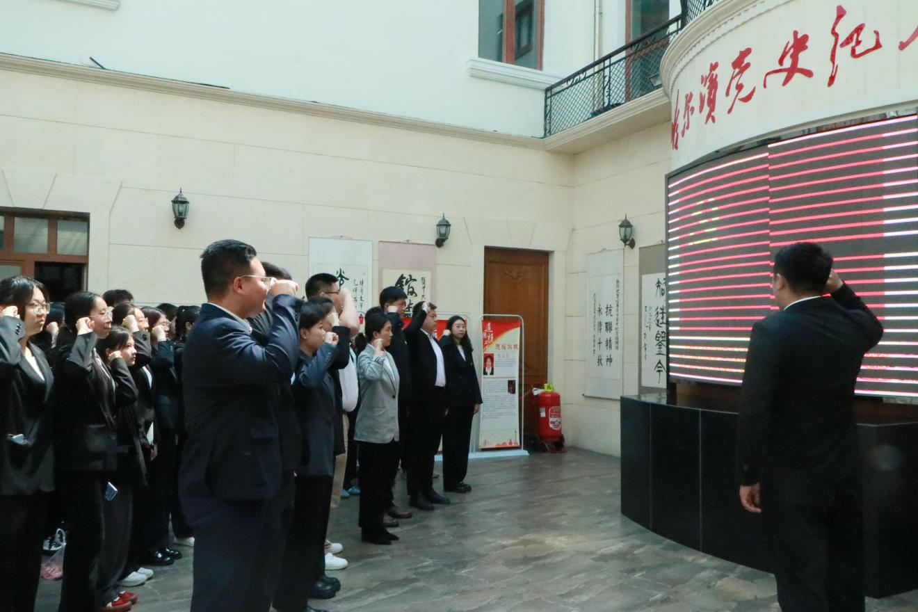 全体人员在党史纪念馆专业讲解团队带领下参观了四大主题展区。通过参观原件、国家级文物、复原的历史场景等,教育引导全体人员深刻领悟“两个确立”的决定性意义,在追寻红色足迹中增强“四个意识”、坚定“四个自信”,做到“两个维护”。