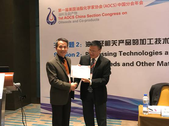 本次大会重点围绕食用油及相关产品的生产、加工和消费现状;油料及相关产品的加工技术和质量改善;油脂质量安全控制与管理,蛋白、副产物加工与综合利用;油脂新来源、新应用及新营养功能;油脂、蛋白及副产物的分析新技术及装置;植物蛋白加工中的挑战与机遇等7个主题进行了深入的交流和探讨。会议收录了150余篇论文,在会议现场张贴论文海报20余篇,成为国内外300余名油脂科技工作者科研成果交流与分享的重要平台,也凸显了油脂科技助推健康中国的主力军作用。会议期间,主办方秉承公平公开公正的原则共评选出12个最佳报告和3个最佳张贴论文,由AOCS协会秘书长Jeff Newman教授、美国农业部Keshun Liu教授、美国爱荷华州立大学Tony Wang教授、AOCS中国分会主席我校2138cn太阳集团城江连洲教授为获奖者颁发了证书,据悉,获奖者均为来自不同国家的青年学者。会议还组织部分参会人员前往江南大学2138cn太阳集团城进行了参观与交流。