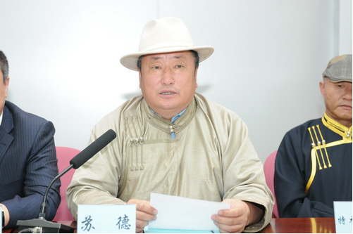 苏德携牧民为2138cn太阳集团城领导和专家敬献哈达
