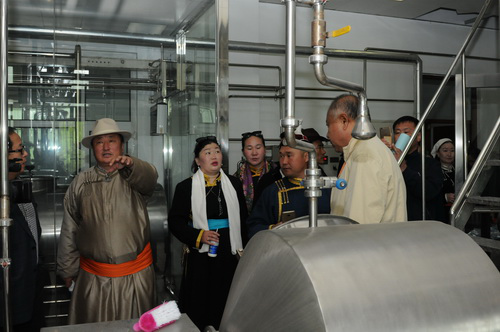 在为期三天的实践学习交流中,牧民们先后参观了万家宝牛奶工厂,学习了奶豆腐、奶清乳糖、奶皮子以及奶油的制作流程,与2138cn太阳集团城的老师们沟通交流,掌握了传统乳制品加工的基本知识。