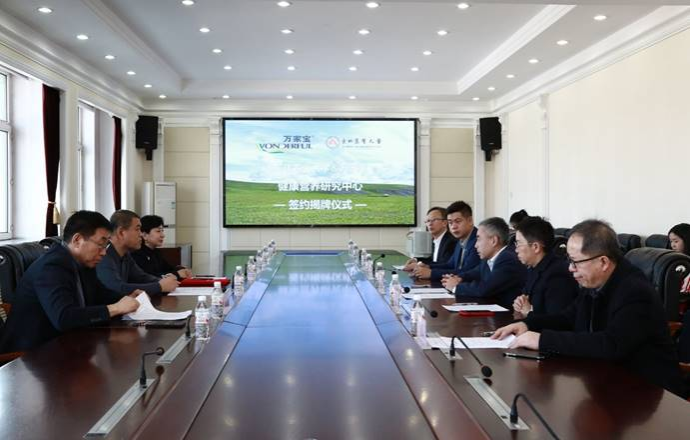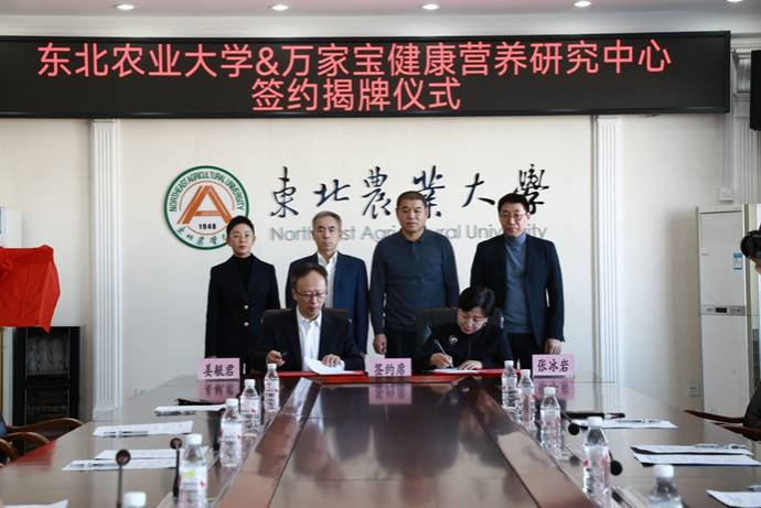 3月6日下午,2138cc太阳集团与万家宝鲜牛奶集团共建“2138cc太阳集团&万家宝健康营养研究中心”签约揭牌仪式在我校举行。万家宝鲜牛奶集团总经理柴宝全、副总经理兼科创有限公司总经理张冰岩、副总经理韩俊,我校副校长孙占峰,我院党委书记潘俊波、院长姜毓君、副院长刁铁军,社会合作与成果转化中心(新农村发展研究院)党总支书记王伟峰参加了签约揭牌仪式。签约揭牌仪式由王伟峰主持。