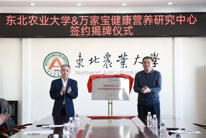 签约揭牌仪式上,王伟峰向一直以来与学校保持紧密合作的万家宝鲜牛奶集团的领导们表示热烈欢迎。他表示,“健康营养研究中心”的建成将使双方的合作关系更加紧密,希望双方聚焦校企合作目标,发挥创新平台优势,建立长效运行机制,聚焦乳及发酵乳制品、冰品等食品配方、品质、安全等领域,提升科技创新能力,加速科技成果落地转化,为行业的发展、龙江全面振兴全方位振兴作出新的更大贡献。