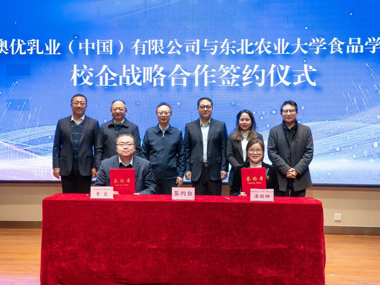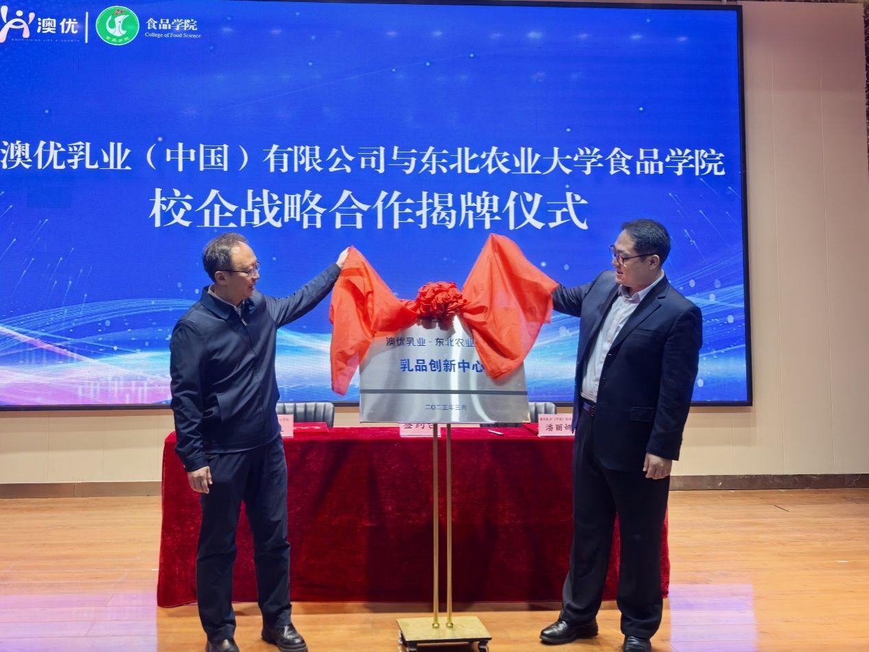 会上澳优乳业与我校举行校企战略合作签约和揭牌仪式。
