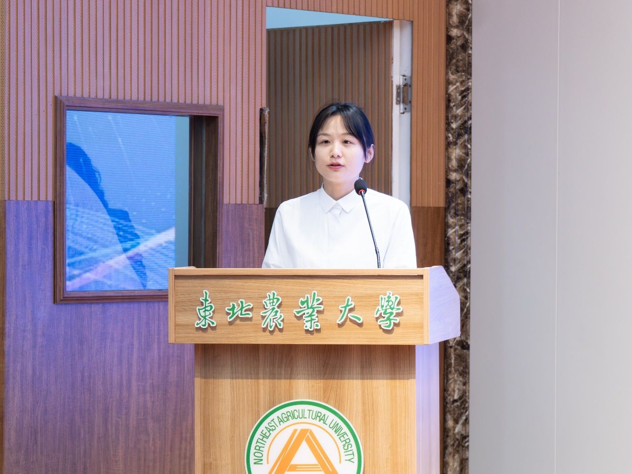 我院2024级食品科学专业博士研究生郑淼代表获奖学生发言。她感谢学校和澳优乳业对同学们的深切关怀,并表示作为新时代大学生要将感谢之情化作成才动力,聚焦乳品科学与功能性食品研发领域,踔厉奋发、努力拼搏,将科研成果写在祖国大地上。