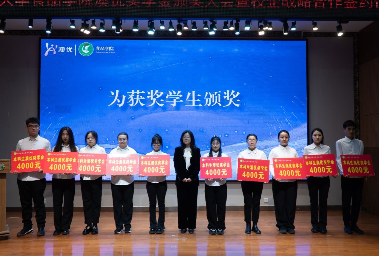 据悉,澳优乳业成立于20039月,专业从事婴幼儿配方奶粉和营养食品研发、生产、销售及服务。2024年,公司在我院设立澳优奖学金,每年10万元用于奖励我院乳品工程相关专业本、硕、博学生及科研成绩突出的青年教师,为食品学子和青年教师提供支持,助力他们追逐梦想,成长为未来乳业发展的生力军。