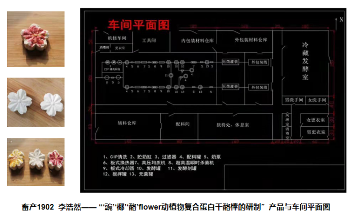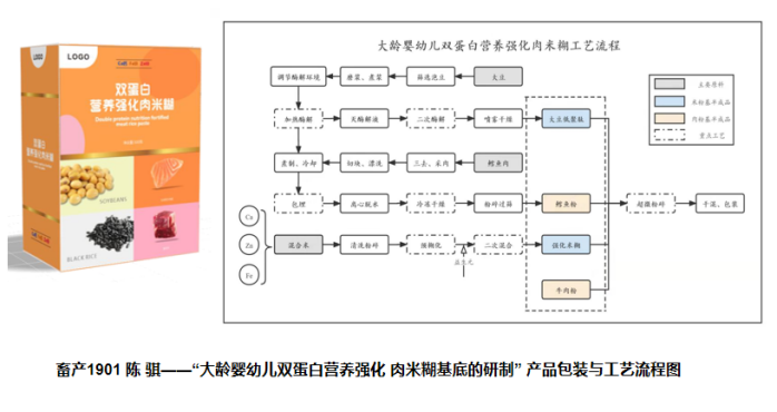 各团队代表生动具体的向评委老师展示活跃的设计理念和丰硕的研究成果,并对制作出的产品实物和车间生产设计路线等进行展示,评委老师们对各项目组研究成果、团队合作及产品做出细致的建议与点评,通过对食品科学与工程专业2019级各班级比赛申报及参赛项目实际开展情况进行考察提问,最终评选出一等奖1项,二等奖2项,三等奖3项,优秀奖3项,优秀班级组织奖2项。其中,由畜产1901班陈骐主持的项目“大龄婴幼儿双蛋白营养强化肉米糊的研发”获得一等奖。