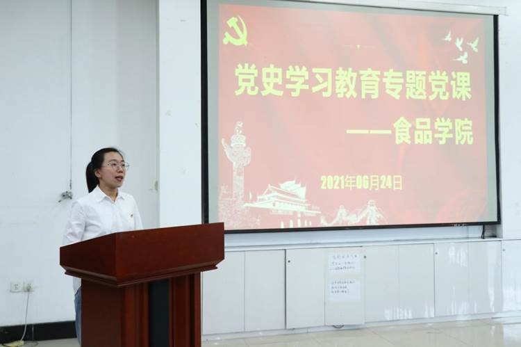 食品工程专业研究生党支部书记、学工办主任王丽萍讲专题党课