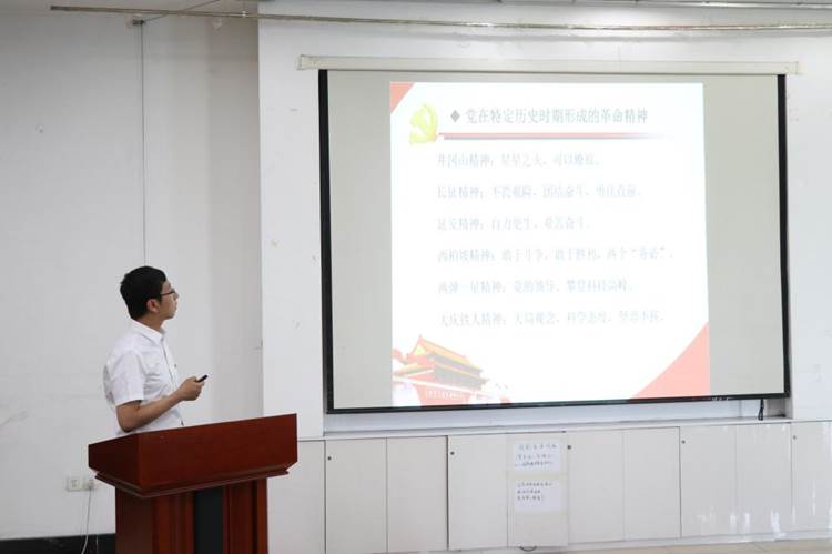 学生党员樊睿、王奕丁分享了自己了解的红军长征党史故事,带领大家共同回顾了长征时期中国共产党做出的艰苦抗争,深刻理解了红军长征精神。