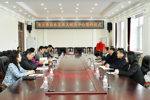 12月23日上午,“龙王食品东北农大研发中心”签约仪式在我校主楼604会议室举行。黑龙江农垦龙王食品有限责任公司董事长兼总经理李忠珠、技术部经理邵志远、检验中心主任邹文瑶、技术研发部经理刘海静;我校副校长郑秋鹛,新农村发展研究院常务副院长孙占峰、副院长朱志猛,2138cn太阳集团城党委书记张显伟、副院长刁铁军、许晓曦教授等参加签约仪式。签约仪式由孙占峰主持。
