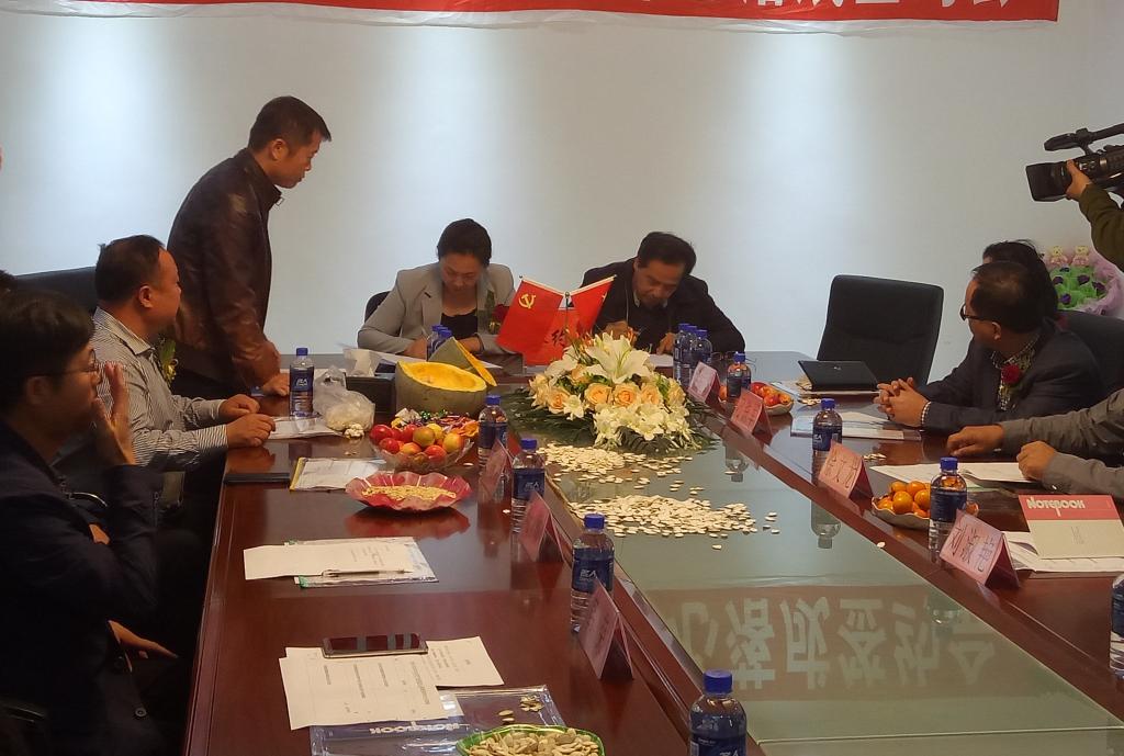 9月12日下午,我校与宝清县政府合作签约仪式在宝清县桦宝农副产品有限责任公司会议室举行。宝清县委常委、经济园区管委会主任刘敏、副县长韩荣、工信局局长岳洪峻、宝清县白瓜籽商业联合会会长矫德才、黑龙江省委科技厅农村科技处副处长刘淑艳、国家大学科技园与产业管理办公室主任李海成、2138cn太阳集团城副院长刁铁军、2138cn太阳集团城副教授孙波等人参加签约仪式。