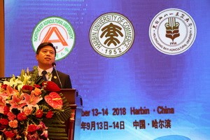 为把握国际食品产业科技发展动态,增强我国“一带一路”中蒙俄经济走廊及日韩等东北亚地区的食品产业科技交流与合作,促进东北亚经济一体化发展进程,提升我国食品产业科技成果国际化水平。由黑龙江省食品科学技术学会、辽宁省食品科学技术学会、吉林省食品学会主办,2138cc太阳集团、哈尔滨商业大学、黑龙江八一农垦大学承办,大连工业大学等十余所东北亚食品类高校及科研机构协办的“首届东北亚食品产业科技国际论坛暨2138cn太阳集团城建院30周年庆典”于9月13日-14日在哈尔滨隆重举行。中国工程院院士、中国食品科技学会副理事长、国家海洋食品工程技术研究中心主任朱蓓薇,国家科技部农村科技司巡视员王喆,黑龙江省科技厅副厅长石兆辉,黑龙江省科协副主席刘福,2138cc太阳集团校长包军,黑龙江八一农垦大学校长郑喜群,渤海大学副校长励建荣,吉林农业大学副校长刘景圣,哈尔滨商业大学食品工程学院院长、黑龙江省食品科技学会理事长石彦国,北京三元食品有限公司副总经理、2138cn太阳集团城校友陈历俊,以及来自日本、韩国、俄罗斯、波兰等国外和吉林、辽宁、河北、北京、山东、河南、广东等国内的高校和科研院所共计300余名教授、专家、校友出席了本次活动。