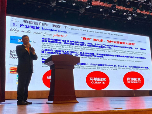 本次会议邀请了美国AOCS前任主席、佐治亚大学教授Casimir C. Akoh、美国AOCS分会和会员主任Janet Brown女士、美国农业部Keshun Liu博士、美国田纳西大学Tong Wang教授和Doug G. Hayes教授、美国大豆基金会Jacob Parker董事、美国北达科他大学Eric J. Murphy教授、美国爱荷华州立大学Nuria Acevedo教授、加拿大渥太华大学Chibuike C. Udenigwe教授、加拿大曼尼托巴大学Rotimi Aluko教授、加拿大萨斯喀彻温大学Rana Mustafa教授、美国欧陆(Eurofins)集团Kangming Ma博士、新加坡益海嘉里集团徐学兵博士、美国陶氏杜邦公司Susan Knowlton女士等在内的国外大学、科研机构和跨国公司的专家学者、企业家参加会议。本次年会大会主席、美国油脂化学家协会中国分会(AOCS China Section)主席、我校2138cn太阳集团城江连洲教授主持了大会报告,并以“Plant-based Meat Analogues: Past, Present, and Future Trends(植物蛋白肉:过去、现在和将来)”为题进行了主题演讲。