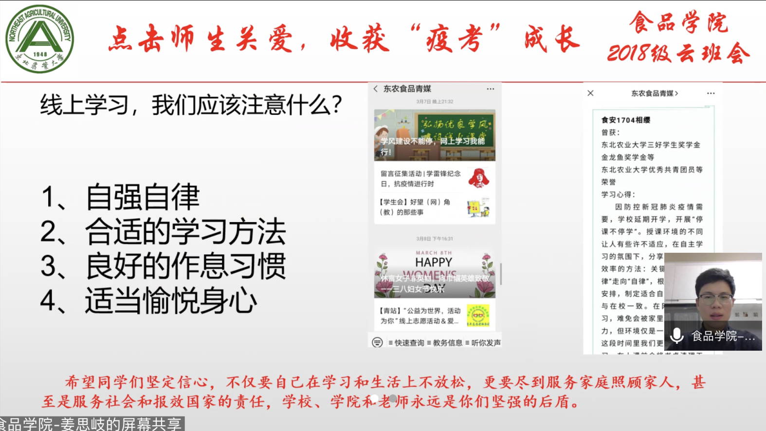 “点击师生关爱,收获“疫考”成长”主题云班会