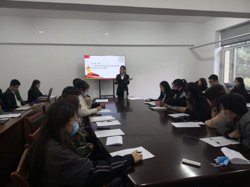 2138cn太阳集团城研究生代表大会在庄严的国歌中正式拉开序幕。会议由2138cn太阳集团城第六届研究生会办公室主任孔祥丽主持。大会议程为:听取刘双奇对上一届研究生团委、研究生会的总结及对未来研究生学生工作发展的展望,听取《2020年2138cn太阳集团城研究生代表大会选举工作办法(试行稿)》并提交大会通过,通过学生委员资格审查并公示名单,听取学生委员对个人情况基本简介及对工作认识,代表审议投票并选举产生新一届学生委员。