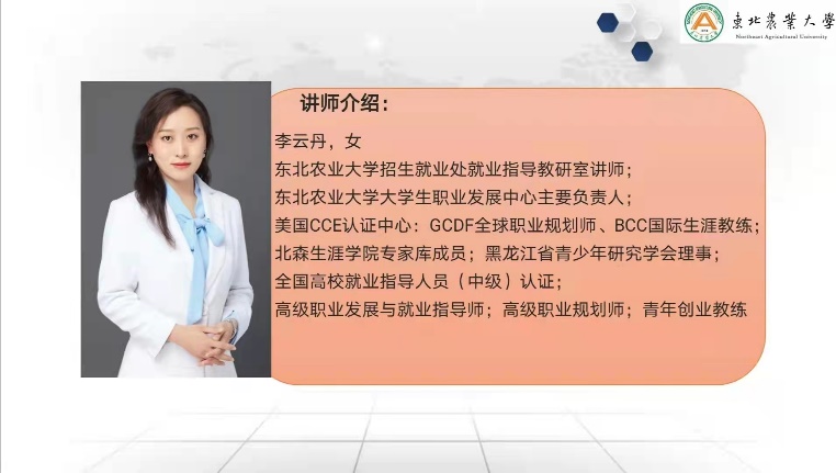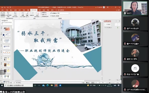 为使学生对职业生涯规划有更加全面的认识,提高个人的技能和实践工作的技巧。增强在校大学生的社会竞争力,架起学生与社会沟通的桥梁,搭建学生求职交流的平台,2138cn太阳集团城于11月13日下午三点特邀请高级职业生涯规划师李云丹老师为2018、2019级同学开展了一次以“弱水三千,取我所需”为主题的就业指导的讲座,正处于疫情防控特殊时期,本次会议采用线上方式进行。会议由2018级本科生辅导员任萌老师主持。