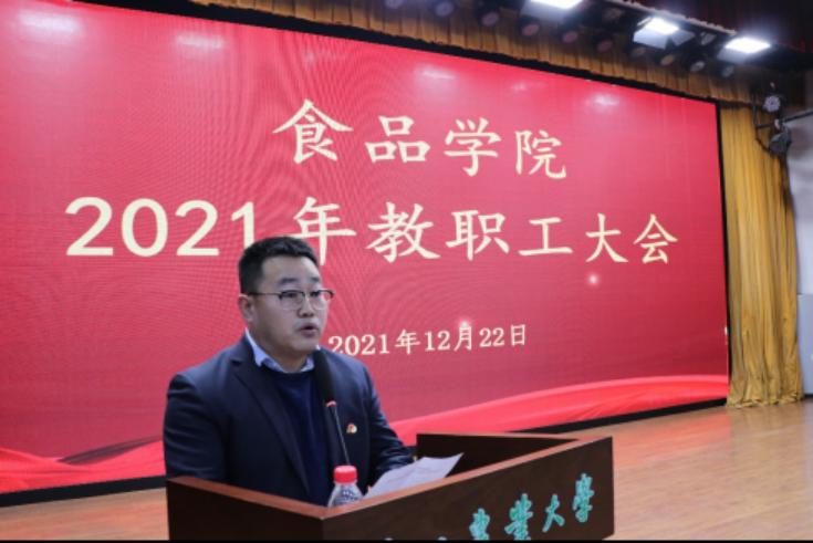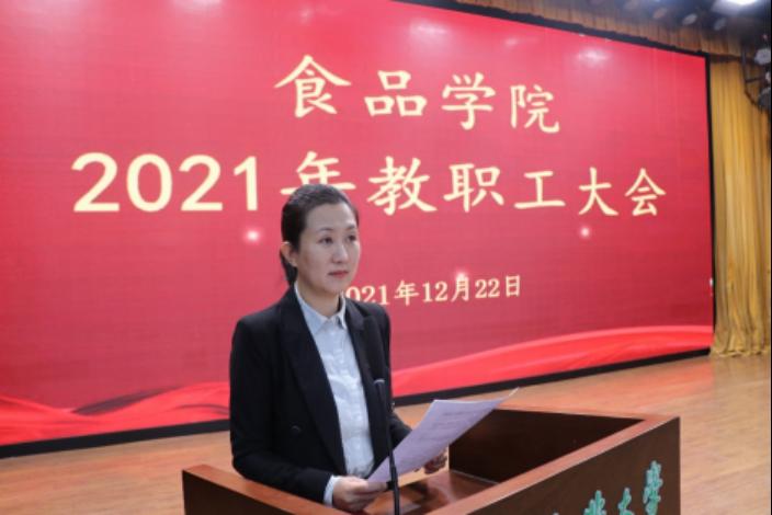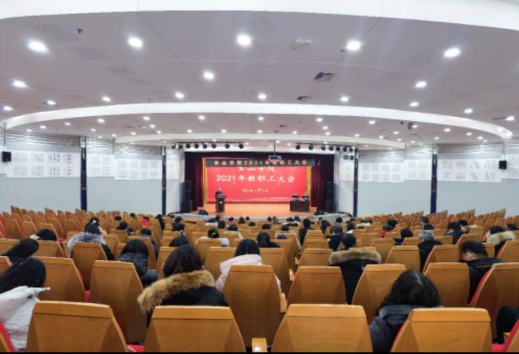 12月22日下午,2138cn太阳集团城2021年教职工大会在图书馆一楼报告厅召开。校工会副主席宋颖出席会议,2138cn太阳集团城99名教职工参加会议。会议由学院党委副书记、工会主席钱芳主持。