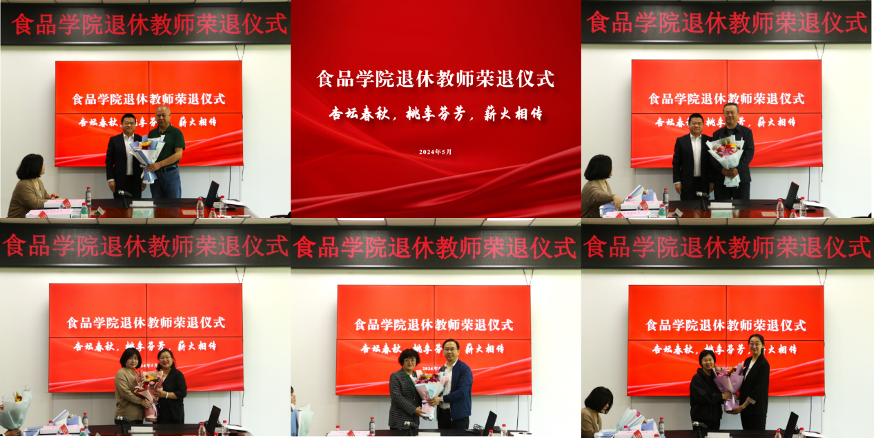 院长姜毓君回顾了郑冬梅、徐红华、于国萍、林立松、潘文彪五位荣退教师的工作历程,对各位退休教师数十年如一日的辛勤耕耘以及为学院发展壮大所作出的贡献表示衷心感谢和诚挚敬意。希望五位老师在开启人生新旅程的同时,莫道桑榆晚、为霞尚满天,退休不褪色、身退信念不退,继续发挥专业优势,为学院研究生教学质量和本科生教学质量的不断提高、本科实验中心高质量建设、食品工艺实践技术难题的解决建言献策、助力添彩。同时,他表示,青年教师要继续学习弘扬退休教师的优良品质,把不畏艰难、勇担使命的奋斗精神传承下去,牢记为党育人、为国育才的初心使命,自信自强、踔厉奋发,为强国建设、民族复兴作出新的更大贡献。