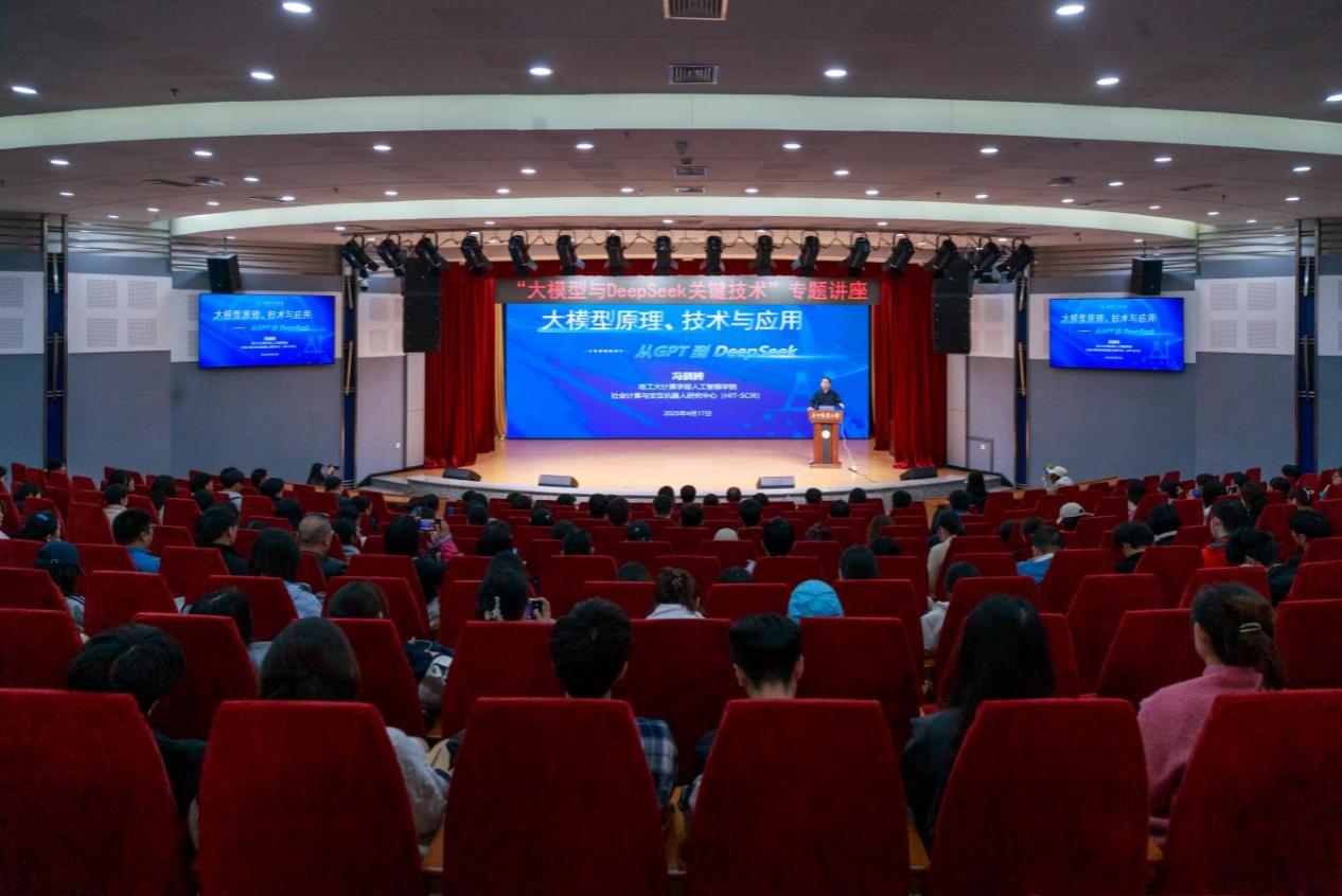 本次讲座邀请了哈尔滨工业大学计算机学部博士生导师、人工智能学院副院长冯骁骋教授作专题讲解。他围绕大语言模型的原理展开,讲解了ChatGPT的发展历程与核心技术路线,特别对国产开源大模型DeepSeek进行了介绍,分析了其在模型架构、训练范式和推理效率方面的技术创新,探讨了大模型在实际应用中的使用方式及与智能体系统结合所带来的新范式和应用场景。冯骁骋的讲解加深了大家对以DeepSeek为代表的生成式人工智能大模型的了解,认识到了大模型赋能科研的多种可能。