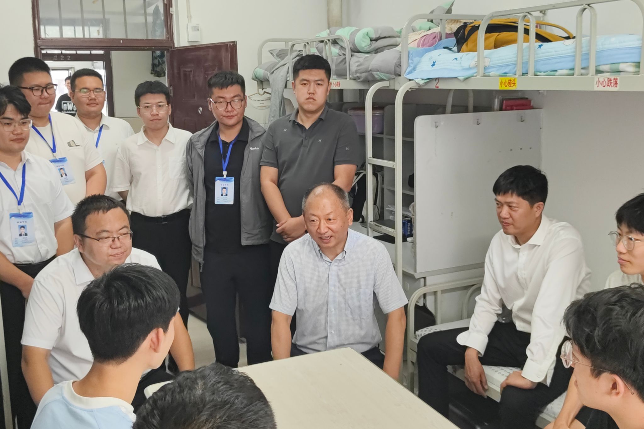 822日,我院召开新生迎新工作线上说明会,学院领导与新生辅导员同本、研新生及家长云端相聚。会上,钱芳系统介绍了学院发展历程、专业特色、学科优势及人才培养成果。辅导员围绕新生需求开展专项讲解。830日下午,学院领导班子与全体辅导员分组走访学生寝室,实地查看住宿环境,询问生活困难,重点关注偏远地区学生适应情况,叮嘱用电安全、尽快融入集体生活,让新生倍感温暖。