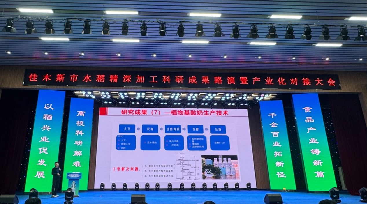 10月18日至19日,我校参加佳木斯市水稻精深加工科研成果路演暨产业化对接大会。来自江南大学、黑龙江省农科院等17家高校和科研院所的50余名专家学者,以及全市重点食品企业代表等350余人参加了大会。我院乳品工程系主任杜鹏参加对接大会。大会开幕式上,佳木斯市委副书记、市长王铁,省科技厅副厅长安建光,省工信厅副厅长羿宗胤分别致辞。