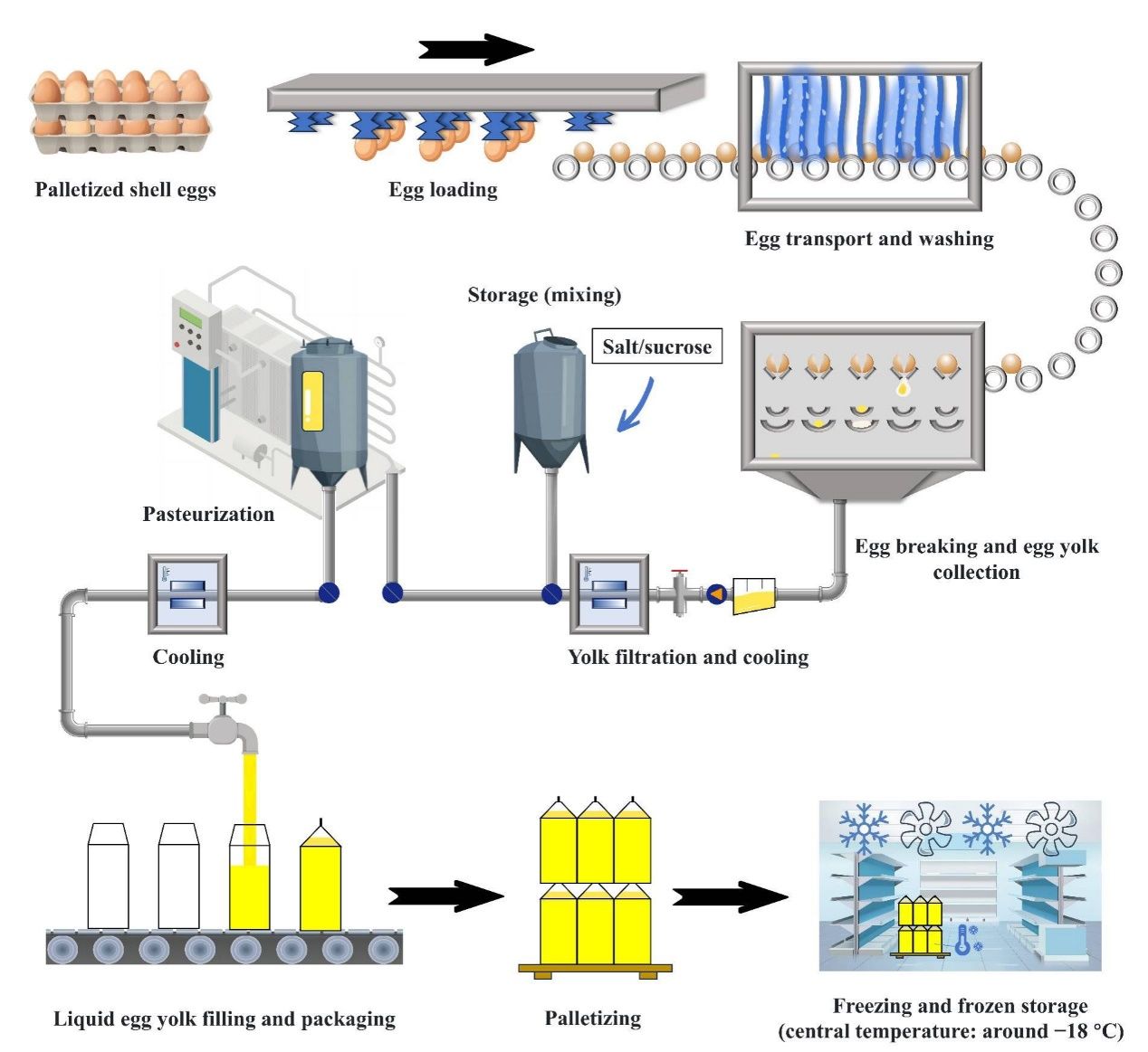 鸡蛋作为一种优质且廉价的蛋白质来源,其产量逐年增加。我国的鸡蛋产量自1985年以来一直处于国际领先地位。但由于我国的蛋源分散、运输半径长,壳蛋在运输过程中易碎等原因会产生一定的经济损失,鸡蛋深加工将是蛋品行业未来的发展趋势。液态蛋作为壳蛋的替代品,极大程度上保持了壳蛋的营养价值,但其仍然存在保质期较短的问题。对液态蛋进行冷冻处理能够将保质期延长1到2年。但液蛋黄在冷冻解冻后会出现降低蛋黄溶解性的“凝胶化”现象,使得蛋黄难以与其它食品原料混合,影响蛋黄作为原料在食品行业中的应用。这一现象吸引了众多学者对其作用机制和质量控制方法进行研究。因此,本团队从生产过程、冷冻基础、凝胶化机理、影响凝胶化行为的因素以及控制冰蛋黄凝胶化行为技术等方面全面综述了冰蛋黄的研究历史,旨在为冰蛋加工领域的研究人员和食品生产商提供一定的见解。