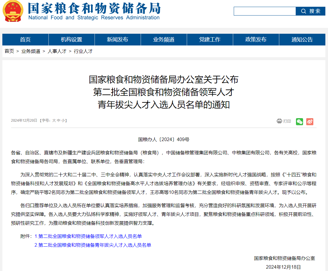 据悉,全国粮食和物资储备领军人才和全国粮食和物资储备青年拔尖人才是国家实施“科技兴粮”“人才兴粮”战略、着力推进人才兴粮兴储、培养造就国家粮食和物资储备高水平人才队伍的重大举措,每两年开展一次选拔。此次共选拔产生2名全国粮食和物资储备领军人才、10名全国粮食和物资储备青年拔尖人才。这是我校教师首次入选该项计划,充分体现了学校时刻牢记习近平总书记关于粮食安全重要论述精神,并以实际行动践行保障国家粮食安全和服务区域发展的神圣使命,这也是我校面向国家粮食安全战略发展需求、打造保障“粮食安全”人才队伍的重要成果。