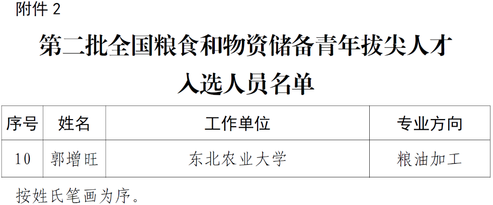 近日,国家粮食和物资储备局公布第二批全国粮食和物资储备领军人才青年拔尖人才入选人员名单,我院江连洲教授团队郭增旺副教授入选,该项目每两年开展一次,每次在全国仅选拔10名青年拔尖人才。