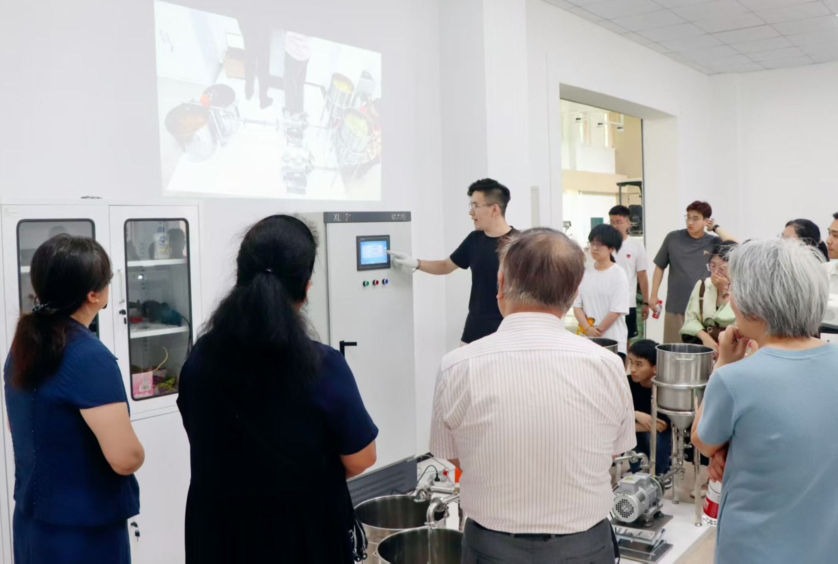 国家“十四五”课题的任务负责人、我校工程学院教授迟媛及团队成员详细介绍了专用型液蛋基料差异化加工与品质提升装备创制的完成情况,并现场演示了液蛋基料生产精确配比及实时在线监测设备的运行过程。国家“十四五”项目负责人刘静波指出,工程学院团队的液蛋基料生产线实现连续化生产和在线监测技术应用前景广阔,可进一步升级优化,在企业生产线开展适配验证。