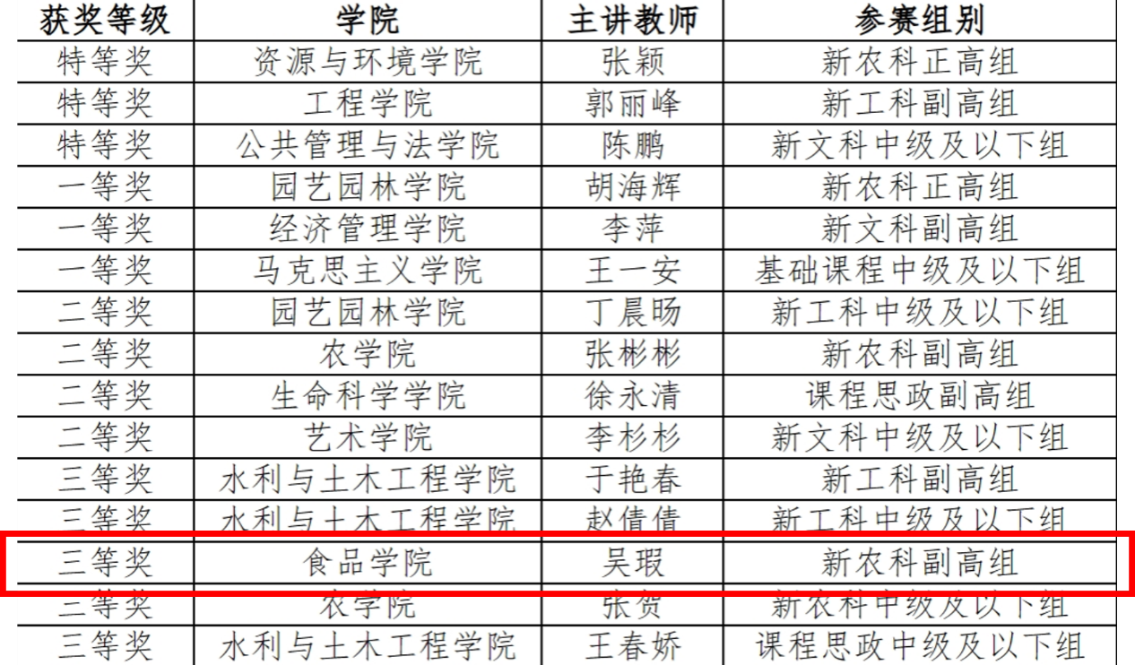 我院吴瑕老师获“新农科副高组”省级三等奖。