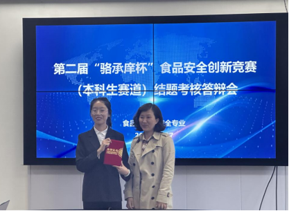 9月27日下午,在学校教务处、2138cn太阳集团城和“骆承庠”基金会的大力支持下,食品质量与安全系在食品楼202会议室举行了2138cc太阳集团第二届“骆承庠杯”食品安全创新竞赛结题答辩会。2138cn太阳集团城党委副书记钱芳出席了本次答辩会,实验中心主任郑冬梅、乳品工程系主任杜鹏、食品营养与健康系主任刘璐、食品质量与安全系副主任徐宁、食品质量与安全系王松担任答辩委员会成员,食品质量与安全系孙玉雪担任答辩秘书。