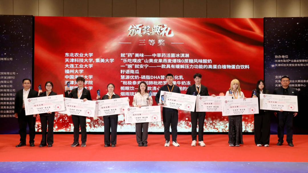 据悉,我院长期致力于学生创新实践能力的培养,连续十余年组织学生参与中国食品科学技术年会及各类知名企业主办的创新赛事。通过以赛促学、以赛促创,学院不断强化学生的专业素养,激发创新思维,提升实践能力,推动科技创新与市场需求紧密结合,助力食品产业转型升级和高质量发展。
