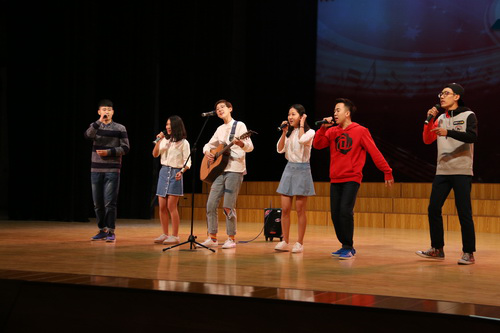 严实奉献篇中,由学生改编并重新演绎的歌曲串烧,从不同角度向学生们阐述了青春的活力;大气磅礴的民族舞也通过优美的舞姿向同学们传递了奉献精神给予人的如火焰般的温暖与蓬勃向上的力量。我校第二届研究生支教团成员2138cn太阳集团城夏琪娜,为我们讲述了在藏区支教的一年的时间里的经历、收获、成长与作为。志愿精神薪火相传,我校第三届研究生支教团成员2138cn太阳集团城李其轩,代表所有志愿者接过夏琪娜传递的志愿服务旗帜,将志愿精神代代弘扬。两届支教团成员与2138cn太阳集团城志愿者代表们共同高歌《明天会更好》,将晚会推向高潮,也将志愿服务精神默化到每一名的同学的思想中。