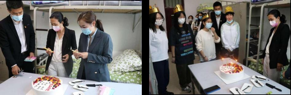 30日下午,学院党委副书记带领新生辅导员老师,给4名新同学过了一个简单而又难忘的生日,食品2208班的尹婷同学说:“看到蛋糕的时候特别地激动、感动,感受到了老师们对我们满满的爱”。在烛光的呼应下,学生与老师第一次见面的陌生感荡然无存,虽是新生报到第一天,却充满了温馨和甜蜜。