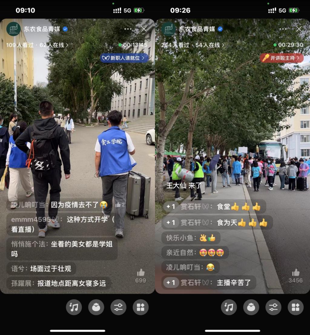 报到当天,为了让各位新生家长免去无法入校的遗憾,学院在29日上午安排了一场直播,超600余人次观看,直播内容除了迎新过程外,还带领各位家长参观了学生宿舍,并通过弹幕回答了部分家长最关心的问题,部分家长表示该形式让他们感受到了学院的迎新氛围,缓解了内心的挂念与不安。