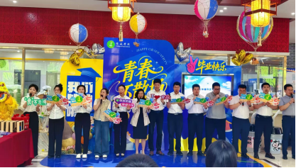 文艺演出在毕业生合唱《凤凰花开的路口》中拉开序幕,学联诗朗诵《致我们的青春岁月》倾诉不舍,辅导员活力演绎《向快乐出发》点燃全场。定制小熊、行李牌等抽奖礼物传递学院关怀。活动现场遍布“手工爱意”的巧思。奶粉罐变身憨态可掬的小蜜蜂,纸壳化作巨型“蛋糕”与“冰激凌”,充气球搭配麻绳成悬浮“热气球”,PVC水管喷涂成绚烂“烟花”,水桶变身可爱“酸奶桶”……这些师生变废为宝的设计,无声诠释着“装满行囊再出发”的期许。