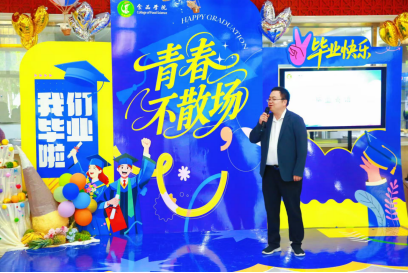 活动以记录青春点滴的温情视频开场,动人画面唤起在场师生共同回忆。姜毓君在致辞环节向毕业生们致以殷切期望。希望同学们以昂扬姿态投身社会,勇创佳绩为母校争光,争做品德、学识、体魄兼备的新时代“三好学生”。施喜军真挚祝愿学生们以赤子之心拥抱时代,锚定祖国所需,在奋斗中保持进取、涵养格局,与家国同频焕发光彩。李良鼓励同学们坚守初心使命,以无畏勇气跨越山海,在时代浪潮中淬炼出属于自己的精彩篇章。