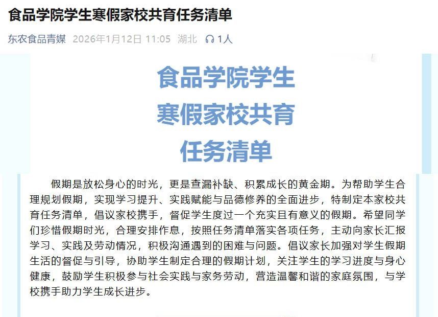 为深入贯彻落实立德树人根本任务,按照学校《“暖冬护苗”行动的通知》要求,我院在寒假紧扣学生教育管理服务核心需求,以精准家访、深度辅导、特色育人为核心抓手,创新工作模式、细化落实举措,扎实推进各项工作落地见效,筑牢家校协同育人防线。